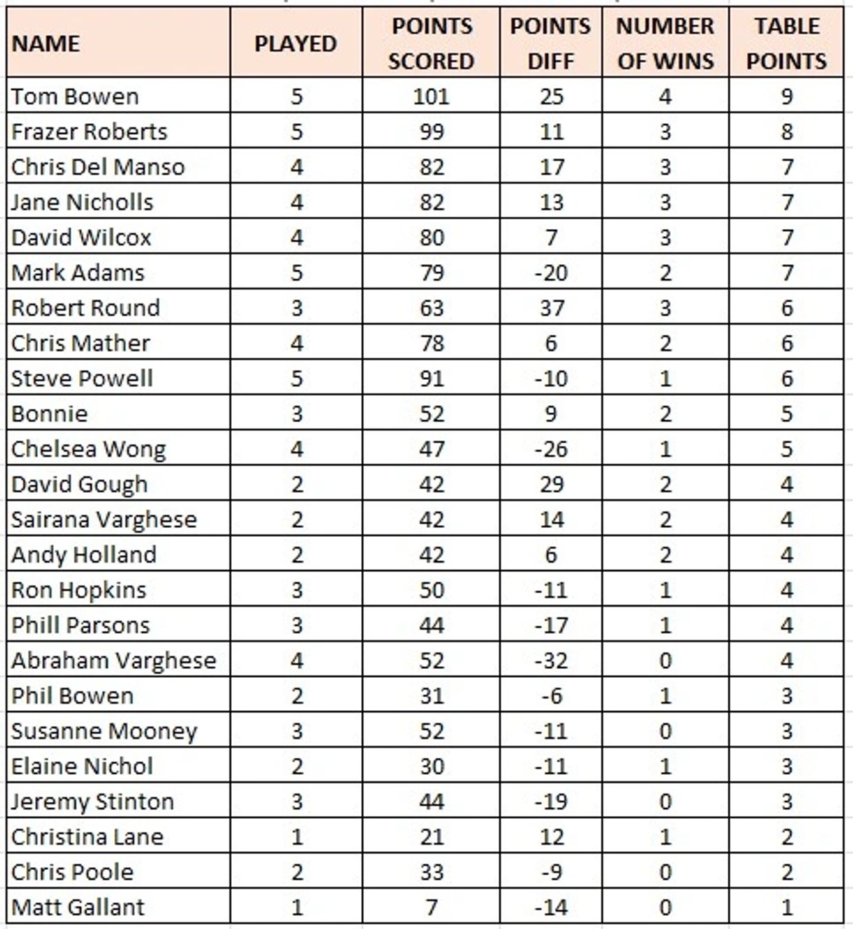 18th September - New Winter Ladder Starts- See Ladder Tab